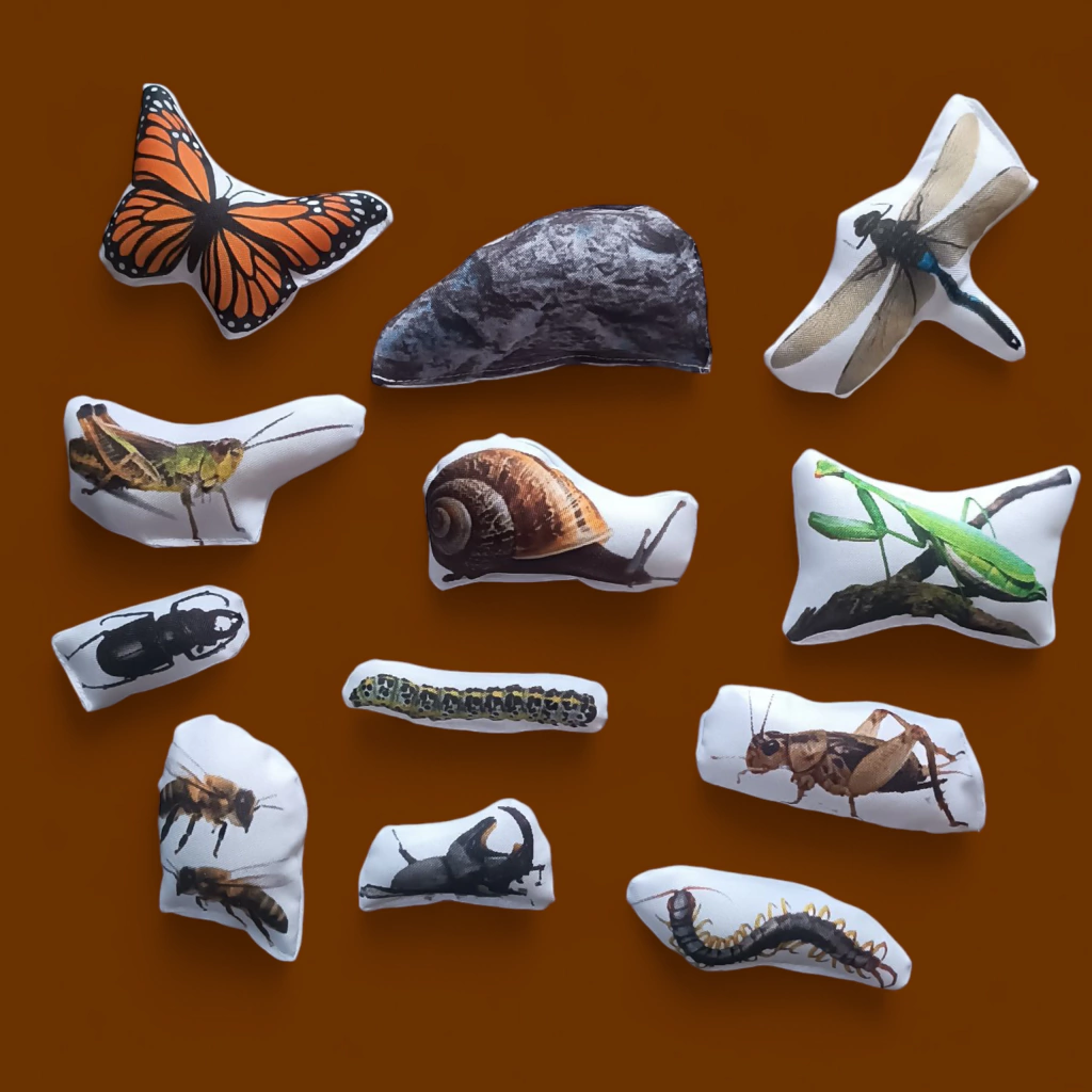 🔍11 figuras de tela con imágenes realistas de bichos, rellenos de vellón